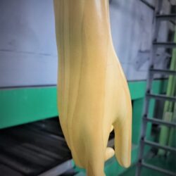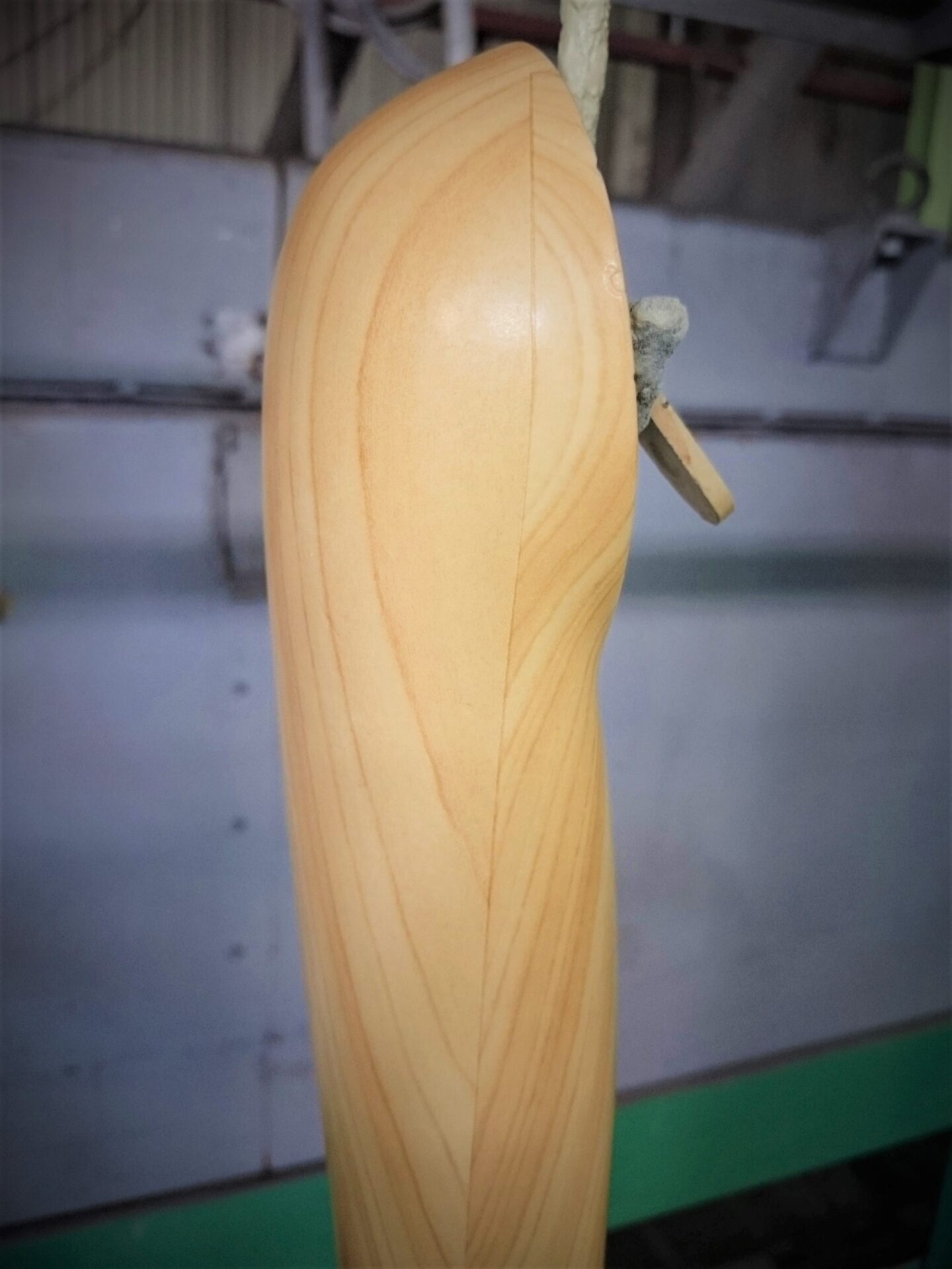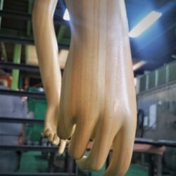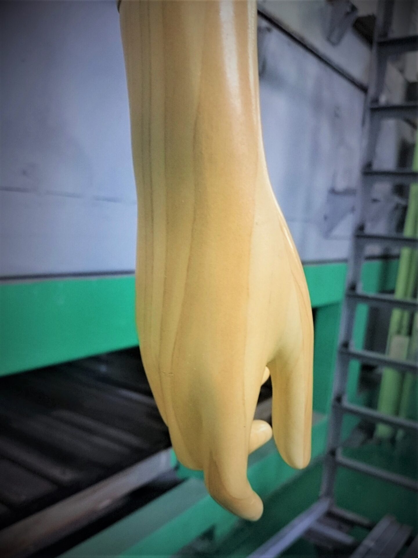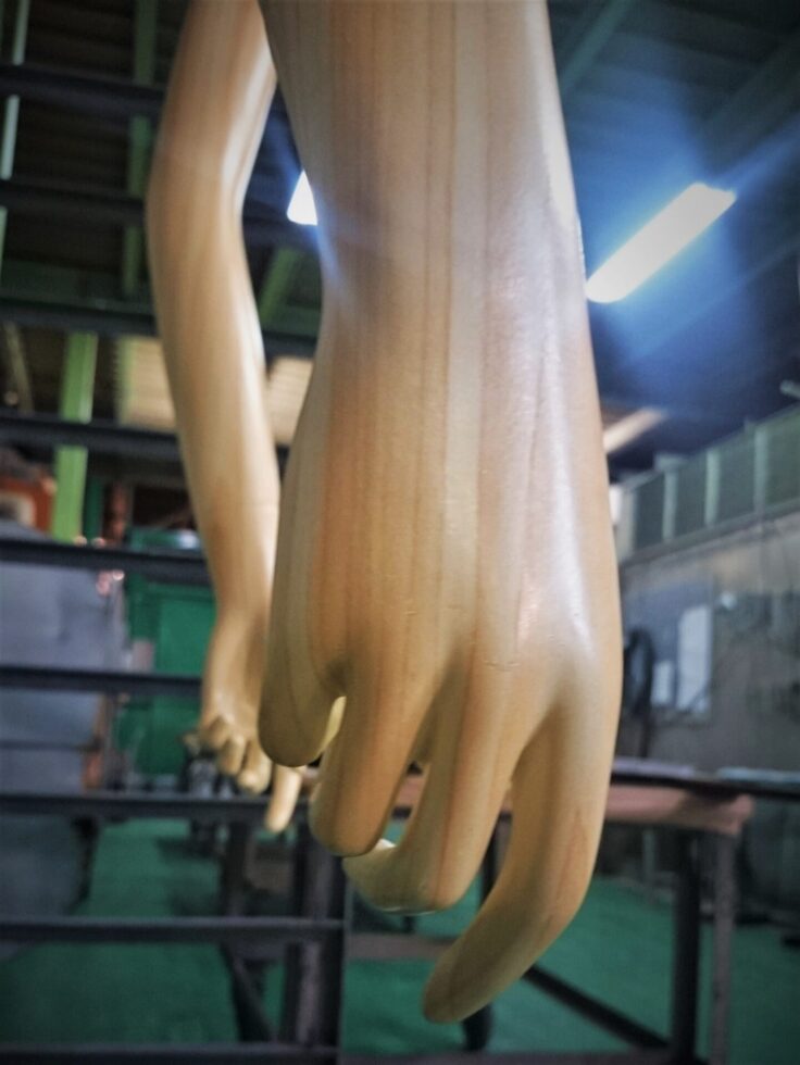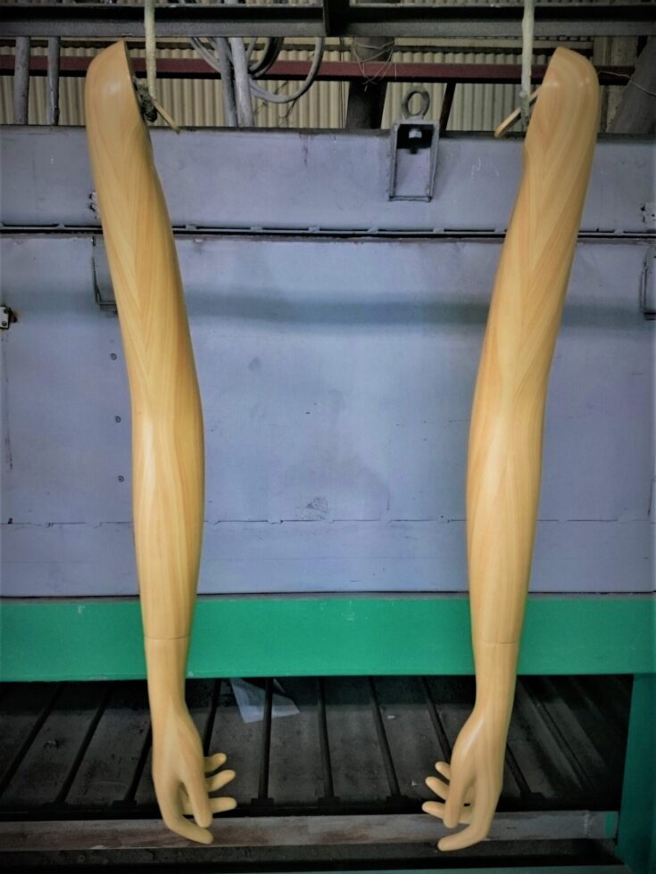 今回は、FRPで造形されたマネキンの腕の部分に、木目調塗装を施しました。柄は、SFコーティングのヒノキです。