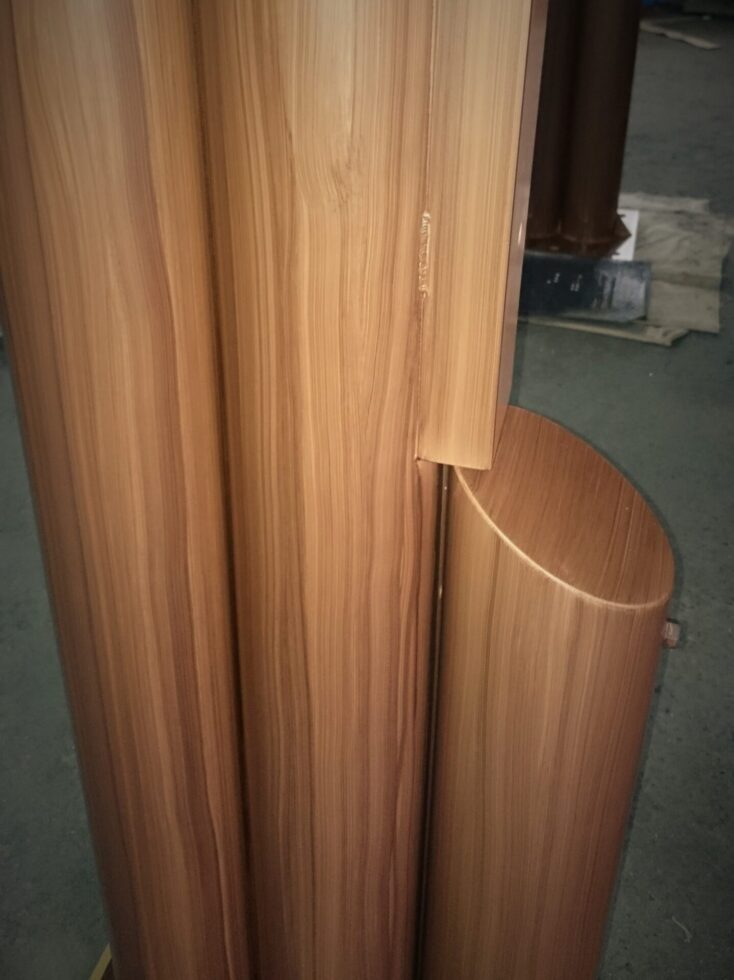 そこで、今回は、手書きの木目調焼き付け塗装を行いました。