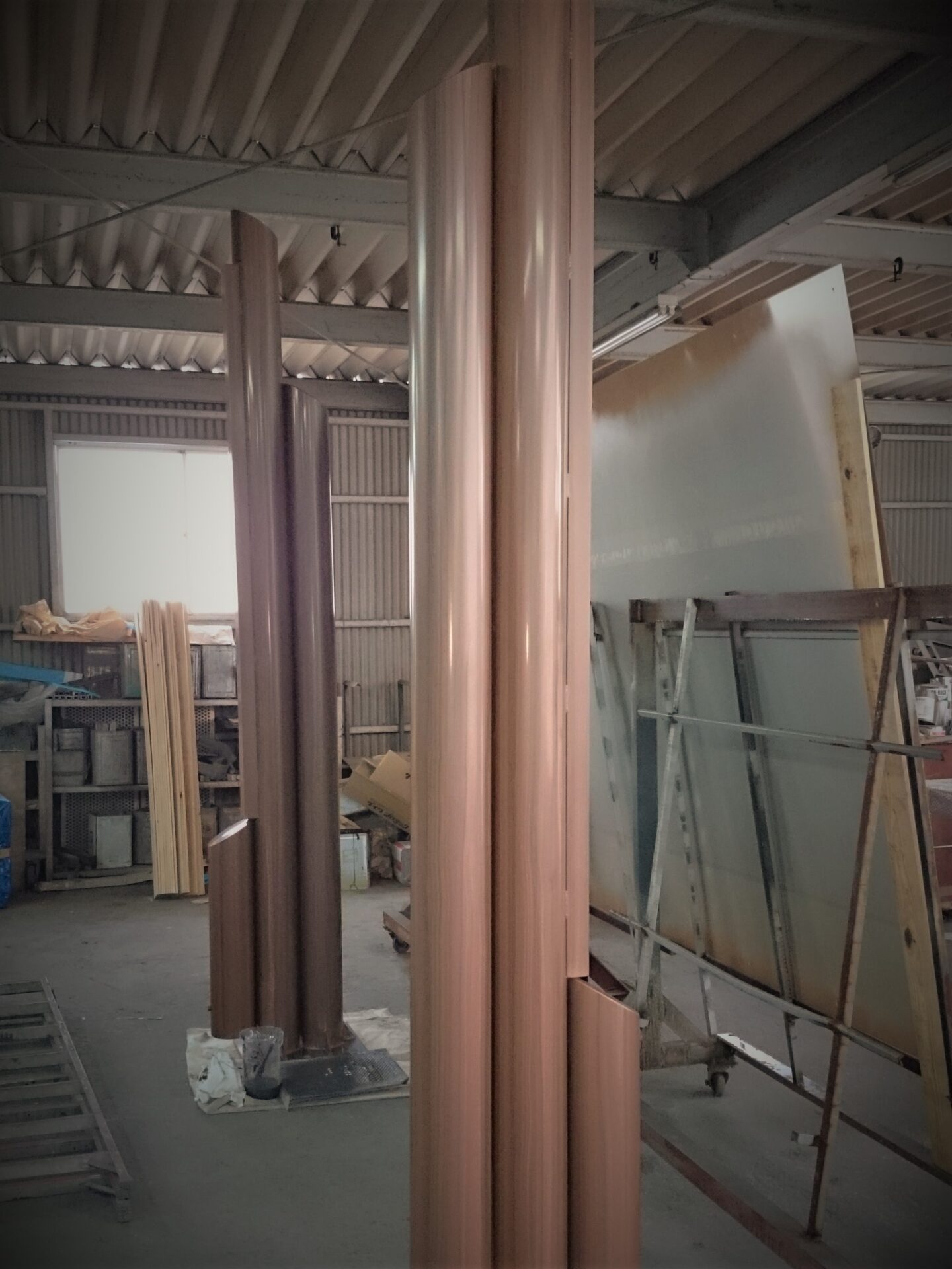 その工程ですが、まず最初にベースとなる明るめの茶色を焼付塗装します。