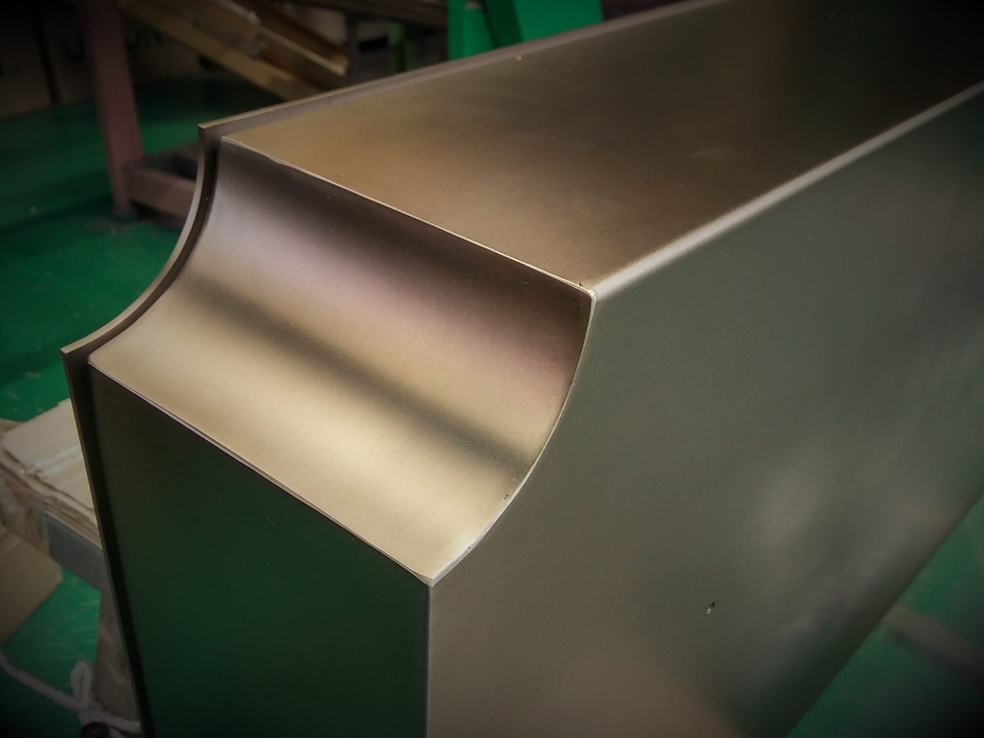 真鍮古美色とは、通常、真ちゅうに硫化イブシ処理を行ったものを指します。今回は、これをステンレスの素材に、塗装のみで表現するという依頼です。