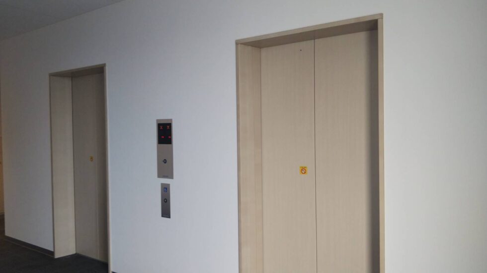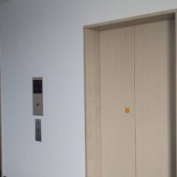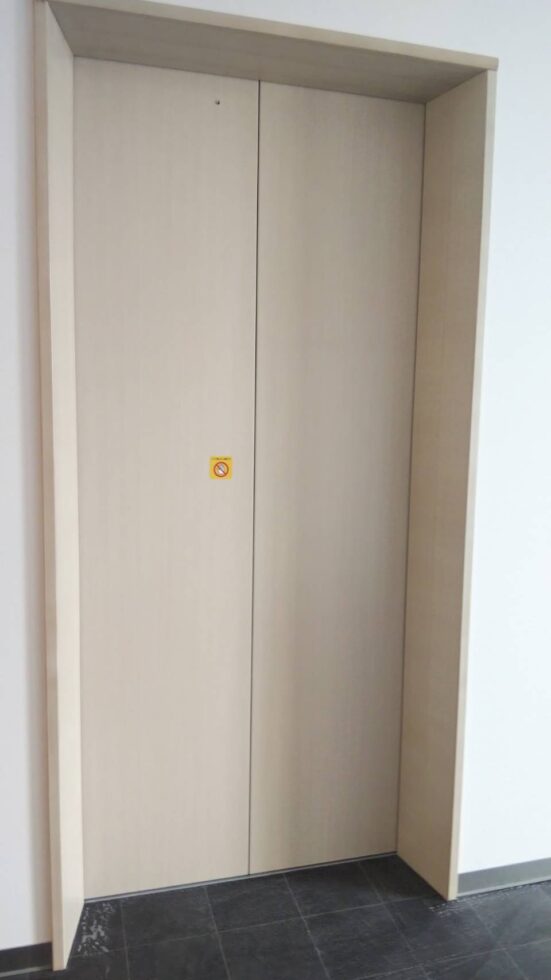 エレベーターの扉は、元々、木目調のダイノックフィルムが貼ってありました。